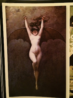 I confess to being kind of 'meh' about it at first, since I'm not really into blood & gore & hardcore horror. But this is actually really awesome! It's broken down into chapters like vampires, werewolves, man-made monsters (aka Frankenstein), aliens, ghosts, etc. It's full of images from old movie posters, paintings, magazines, illustrations - the whole gamut! If you click on the link up there, Miranda posted more pictures on that link, but these are a few of my favorites...