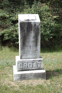 My sister & I decided to go out late one September evening last year & drive thru this cemetery. It was cool & hazy and the mist had risen so we'd kind of freaked ourselves out. We got to the back of the cemetery, which is long & narrow with only one defined road in & out, and stopped to look & listen Just then the low fuel alarm on the car decided to go off and made us both jump & scream a little - LOL! So as we turned around, the car's headlights shone on this stone & I had to get a picture!